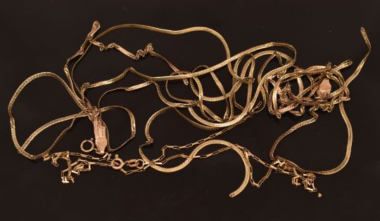 Two sections of 9ct gold necklaces, 11.8g