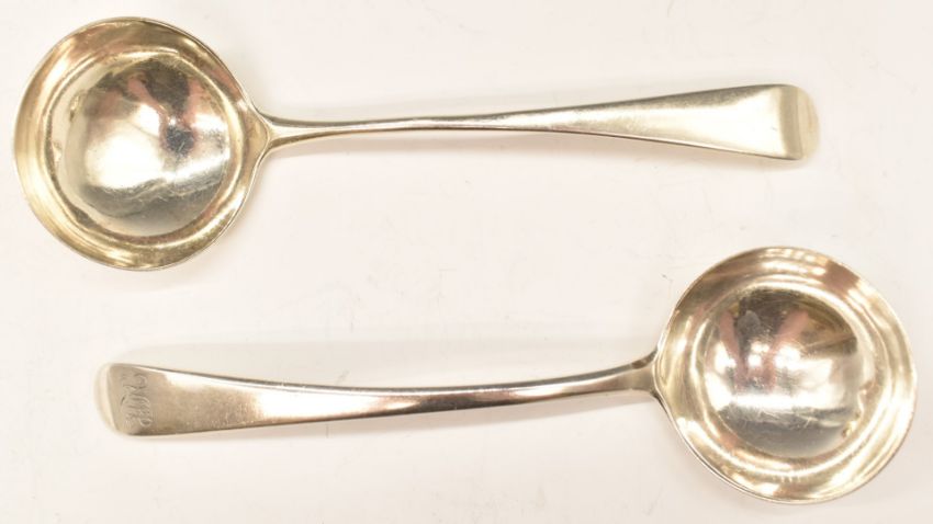 Two Georgian hallmarked silver sauce ladles, one being bottom hallmarked, London 1780, maker's mark indistinct but likely John Lambe, the other London 1798, maker Peter and Ann Bateman, length 17cm, weight of both 103g