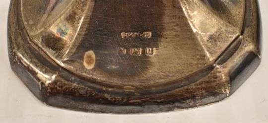 Hallmarked silver epergne, hallmarked silver trumpet vase and two cased sets of hallmarked silver handled knives, height of epergne 18cm