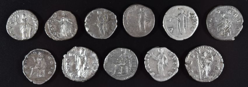 Roman Imperial coinage The Antonines AD138-193 Faustina Junior eleven silver Denarius struck under Marcus Aurelius and Antonius Pius, diameter 17-18mm