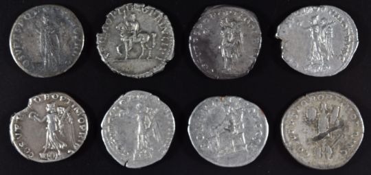 Roman Imperial coinage Adoptive Emperors AD96-138 Trajan eight silver Denarius, various reverses, diameter 17mm