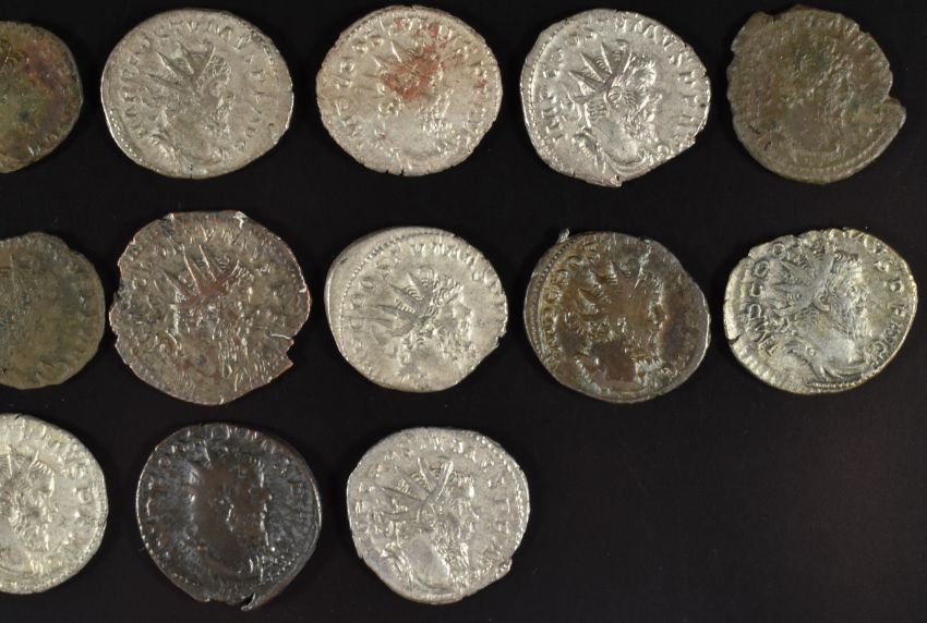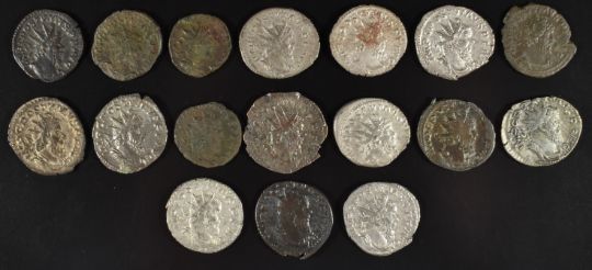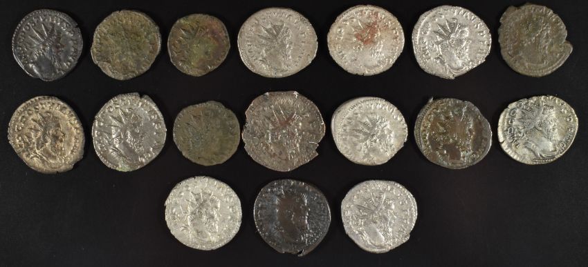 Roman Imperial coinage Military Anarchy AD235-270 Postumus seventeen Antoninianus silver, silvered and bronze coins, some Billon examples