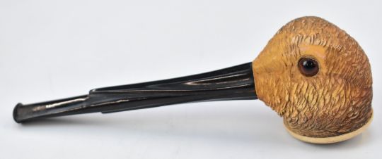 F Edwards & Co, 24 Glasshouse St, Regent St, W, novelty Meerschaum pipe formed as a snipe or similar bird, in original fitted case, length of pipe 15cm