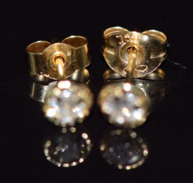 A pair of 18ct gold earrings set with a round cut diamond to each