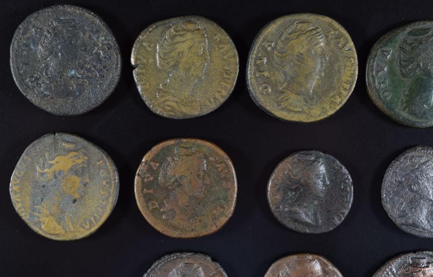 Roman Imperial coinage The Antonines AD138-193 Diva Faustina Senior thirteen bronze coins to include seven Sestertius, four Dupondius and two as, diameter 25-30mm