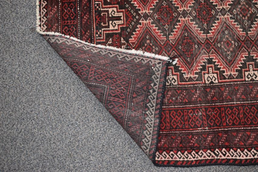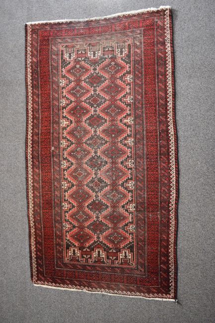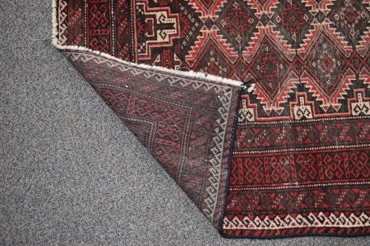 Turkoman rug with red ground and geometric pattern to central section, 191 x 90cm