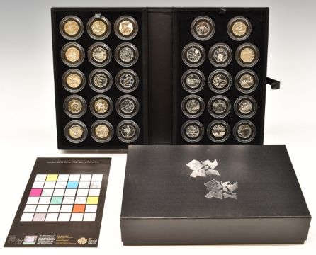 Royal Mint London 2012 Olympics collection of twenty nine silver 50p coins, maximum mintage of 30,000 per coin, cased with paperwork in outer box
