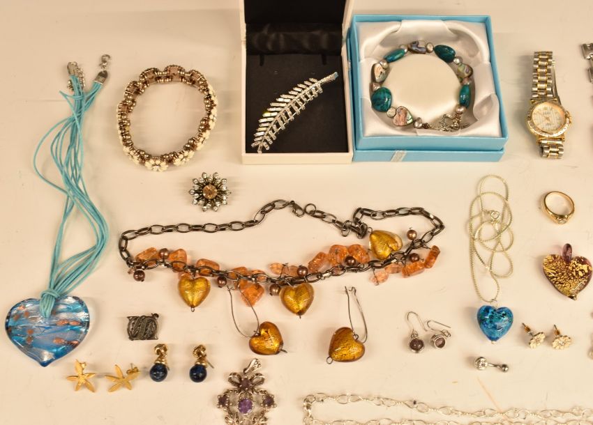 A collection of jewellery, some silver including pendant, necklace, earrings etc
