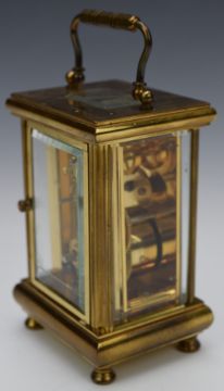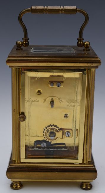 Angelus brass cased bevelled glass carriage clock, H15.5cm