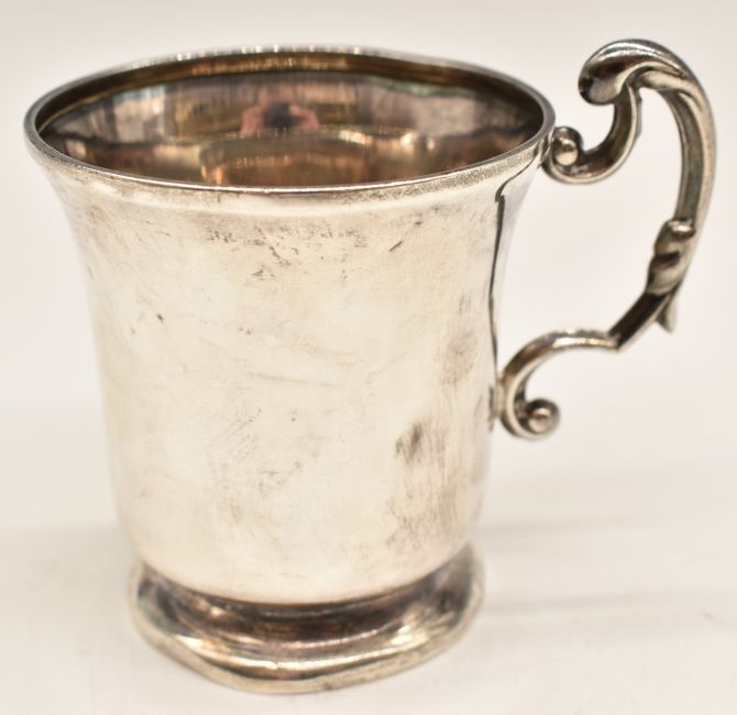 George VI hallmarked silver christening mug, Birmingham 1937, maker Crisford & Norris Ltd, height 7cm, weight 47g