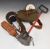 A collection of shooting accessories including cartridge bag and belt, Napier Bigfoot magnetic cartridge collector, cleaning kit etc.
