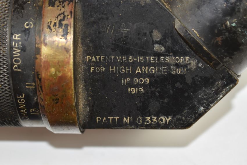 Ottoway and Co gun sight for high angle gun no 909, dated 1919, with broad arrow mark, L64cm, together with smaller unmarked sight, L76cm
