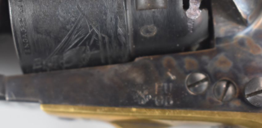 Deactivated Armi San Marco Colt six-shot single-action revolver with engraved scenes to the cylinder, wooden grips, brass trigger guard and 8 inch barrel stamped 'Address Col Saml Colt New-York US America', serial number 213093, with deactivation certificate dated 26/10/21.