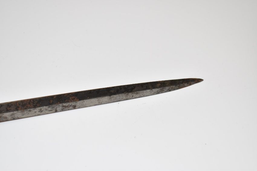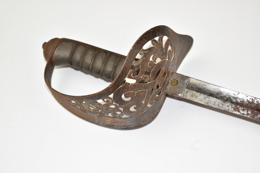 British 1897 pattern sword with VR cypher to hilt, 80cm blade and scabbard. PLEASE NOTE ALL BLADED ITEMS ARE SUBJECT TO OVER 18 CHECK ON COLLECTION OR DELIVERY