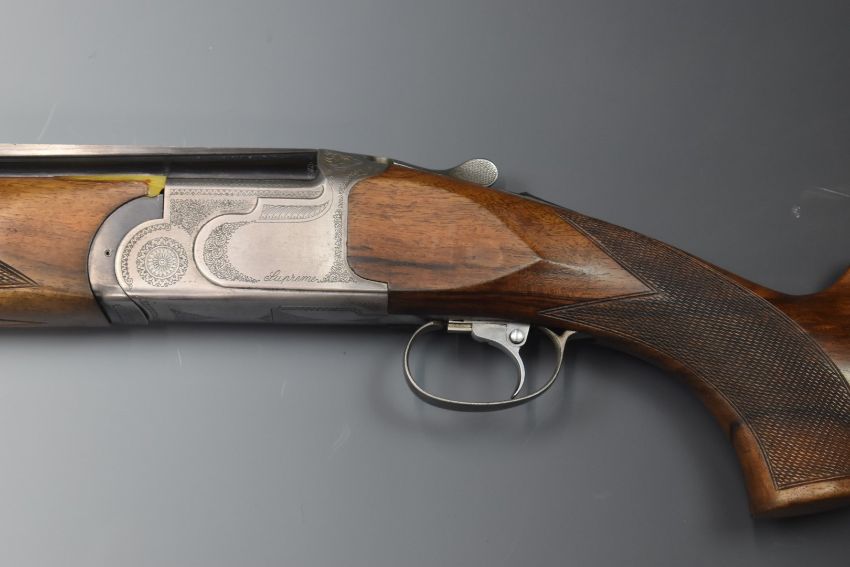 Armi Silma Supreme 12 bore over and under ejector shotgun with engraved lock, underside, trigger guard, top plate and thumb lever, chequered semi-pistol grip and forend, single trigger, vented top and central ribs and 28 inch multi-choke barrels, overall length 116cm, length of pull 37cm, serial number 41470. PLEASE NOTE THAT A VALID RELEVANT FIREARMS/SHOTGUN CERTIFICATE IS REQUIRED TO HANDLE/PURCHASE THIS ITEM.