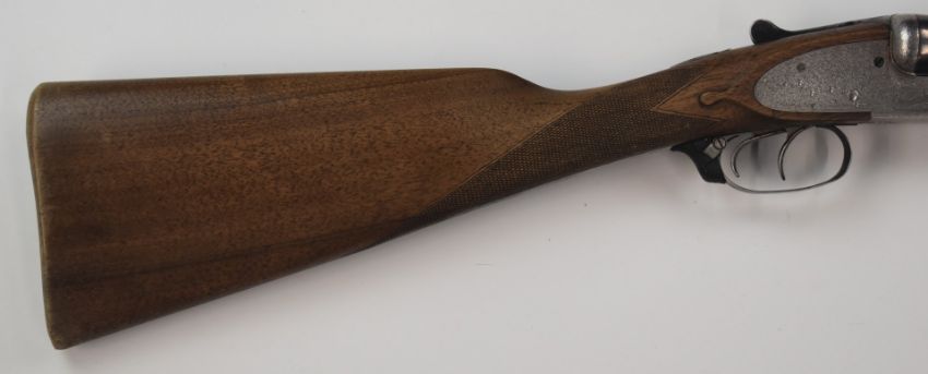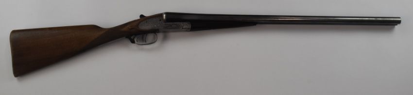 E J Churchill 12 bore sidelock side by side ejector shotgun with named and engraved locks, engraved trigger guard, underside, top plate, thumb lever and fences, chequered grip and horn tipped forend, carved teardrop to the wrist, double trigger and 26 inch barrels choked improved cylinder and full, overall length 115.5cm, length of pull 36.5cm, serial number 680. PLEASE NOTE THAT A VALID RELEVANT FIREARMS/SHOTGUN CERTIFICATE IS REQUIRED TO HANDLE/PURCHASE THIS ITEM.