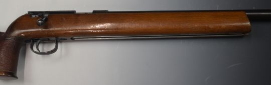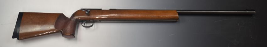 Anschutz model Match 64 .22 bolt-action target rifle with raised cheek piece, adjustable butt plate and trigger, chequered semi-pistol grip, adjustable butt plate and 26 inch barrel, overall length 108cm, serial number 913739. PLEASE NOTE THAT A VALID RELEVANT FIREARMS/SHOTGUN CERTIFICATE IS REQUIRED TO HANDLE/PURCHASE THIS ITEM.