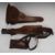 WW1 German Artillery semi-automatic Luger pistol leather holster with wooden shoulder stock stamped 4366, leather straps, double magazine pouch, stripping took and cleaning rod.
