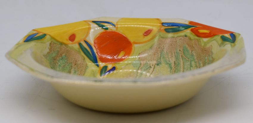 Clarice Cliff for Newport Pottery hexagonal dish decorated in the Oranges and Lemons pattern, H3 x D15cm