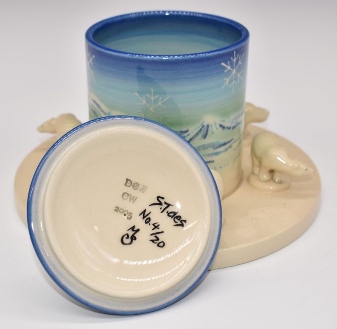 Dennis Chinaworks signed limited edition 4/20 covered figural cache pot 'Polar Bear Procession', diameter 18, H15cm