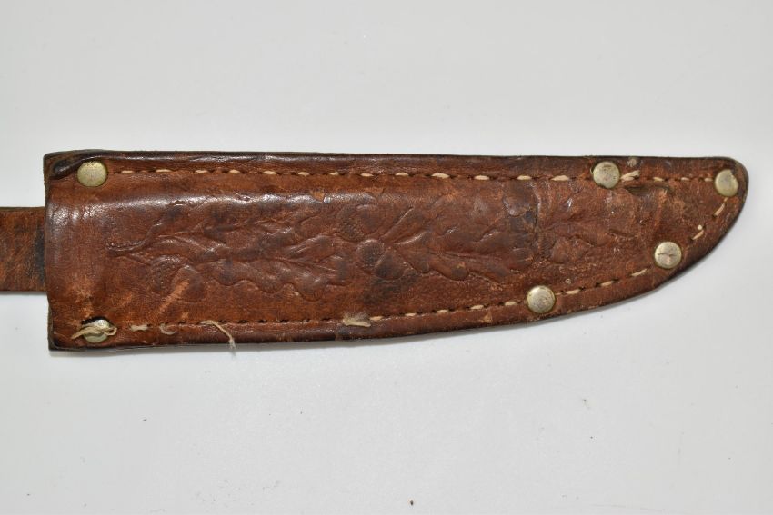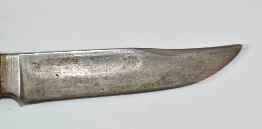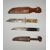 Pair of kukri knives with 29cm curved etched blades and scabbards, together with two hunting knives, longest blade 15cm, both with sheaths. PLEASE NOTE ALL BLADED ITEMS ARE SUBJECT TO OVER 18 CHECK ON COLLECTION OR DELIVERY