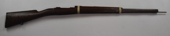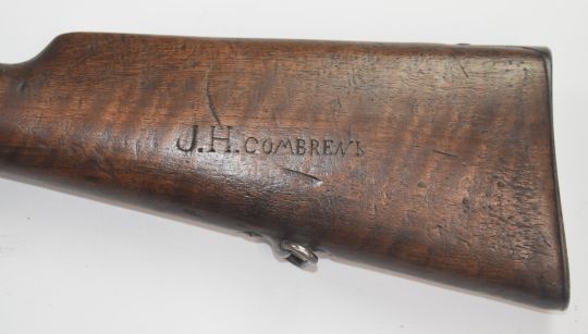 Boer War interest Mauser Gewehr bolt-action rifle stock engraved 'Blood River Poort 15. V 02' and 'JH Combrent' with steel butt plate, ram-rod, forend tip and sling mounts, 121cm long.