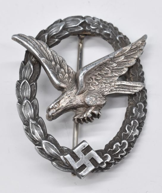 Luftwaffe unqualified air gunner's badge - introduced April 25th 1944 and awarded to personnel acting in capacity of air gunners who had taken part in at least ten combat operations (or had been wounded in these operations), stamped 'W Deumer Ludensceid' brought back from WW2 by vendor's father who was Company Runner, Special Operations Assault Division, D Day 19 BAOR
