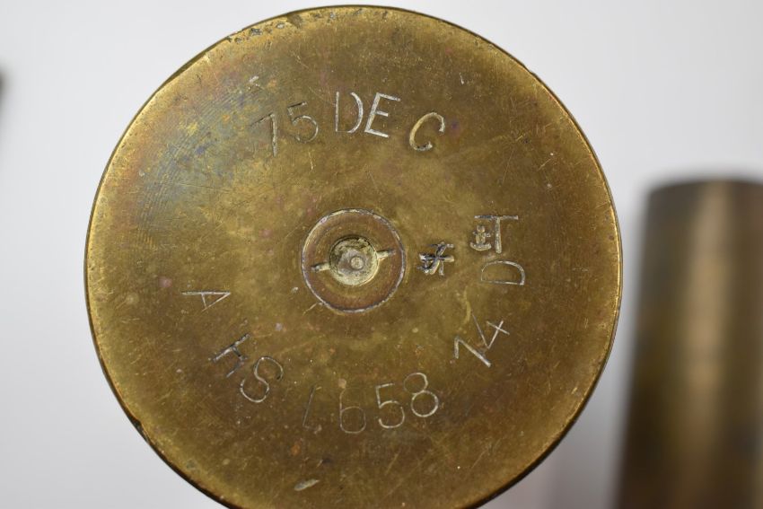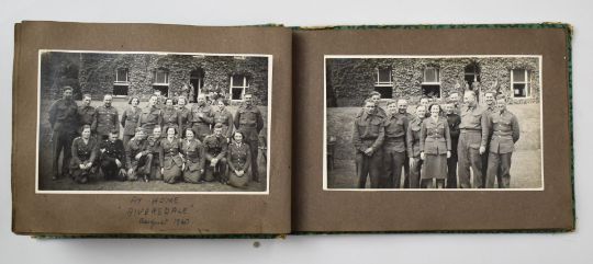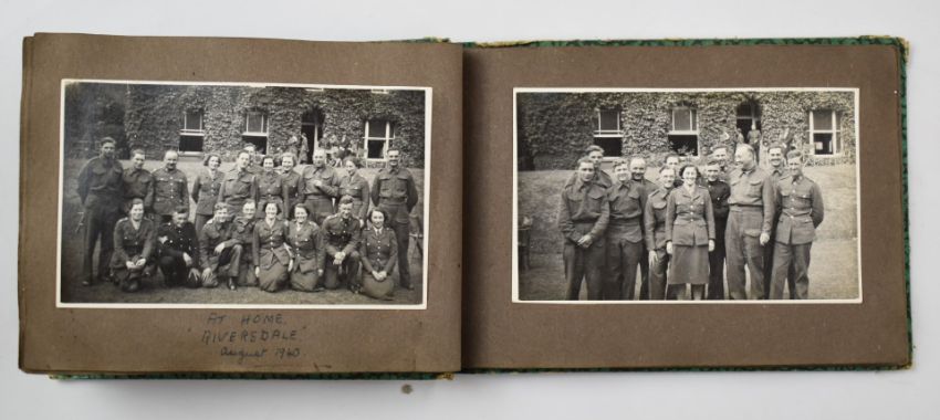 Five brass shell cases, inert rubber bullet baton round, inert ammunition and a WW2 possible ATS photograph album