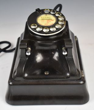 Vintage black Bakelite wall mounted telephone, numbered to back L1186 B9, possibly by Strowager