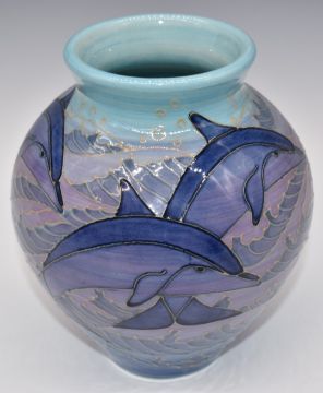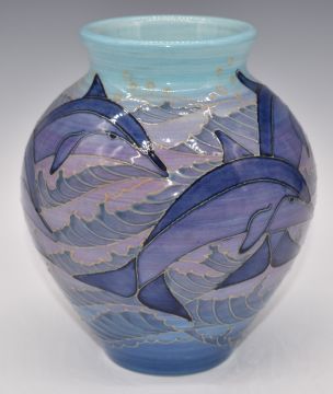 Dennis Chinaworks signed limited edition 43/50 'Illyria' vase decorated with dolphins, made for B & W Thornton of Stratford Upon Avon, H19cm