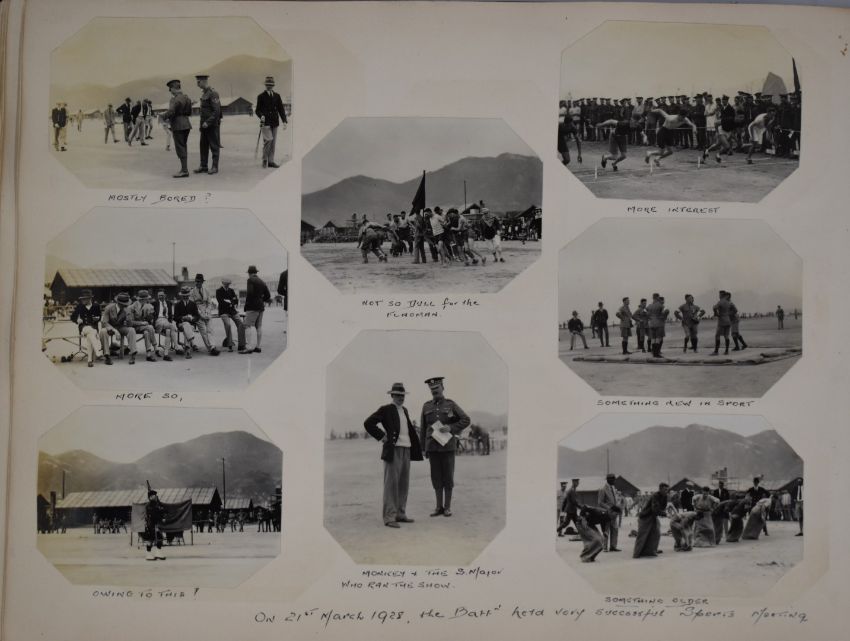 British Army Scots Guards Captain E T Cutler's photograph album 'China 1927 to 1929' containing over 200 photos, most captioned, including battery picnics, Hong Kong 1927, outside the cookhouse, baggage moving off, right flank arriving, Shameen, Canton, St Andrews Day Sports, camp life under canvas, Guard of Honour for Admiral Bristol US Navy, rifle ranges and shooting team, Sergeants of the 2nd Battalion Coldstream and Scots Guards, King's Birthday parade, training within the billet etc together with Captain Cutler's handwritten journal for the same period