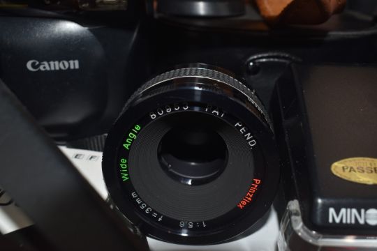 Cameras and accessories to include Praktica LTL 3 SLR with Zeiss Tessar 2.8/50 lens, Tasco 20-60x60mm and Bushnell Spacemaster II spotting scopes, Canon Poweshot G5 and Panasonic DMC-TZ3 digital cameras, Prinz 16x50 and Pentax 12x24 binoculars and two flight cases