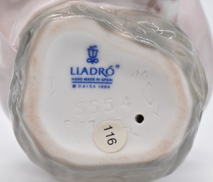 Six Lladro girl figurines, Lladro cat and two Goebel Hummels, tallest 22cm