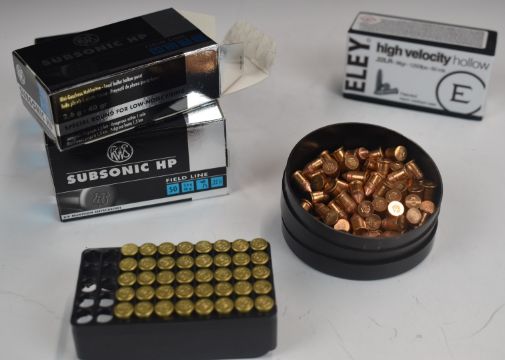 Three-hundred-and-fifty .22LR rifle cartridges including RWS Subsonic and Eley Velocity, all in original boxes. PLEASE NOTE THAT A VALID RELEVANT FIREARMS/SHOTGUN CERTIFICATE IS REQUIRED TO HANDLE/PURCHASE THIS ITEM.