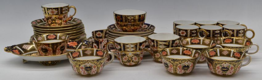 Thirty four pieces of Royal Crown Derby tea and coffee ware, including 23cm plate in 1128 pattern, 6 cups and saucers in 2451 pattern 6 further cups with matching saucers, 3 tea plates, oval dish etc