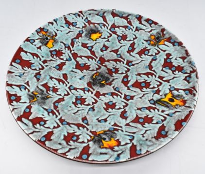 Poole Pottery charger with abstract leaf and berry decoration, diameter 41cm