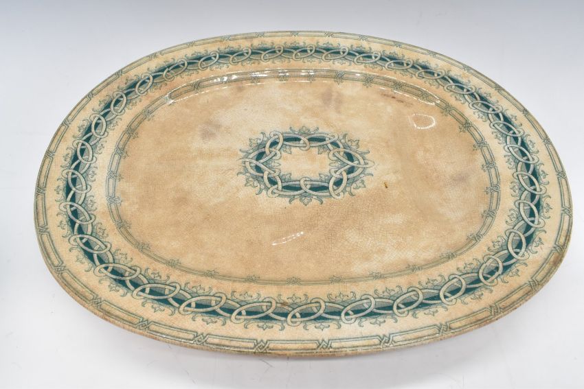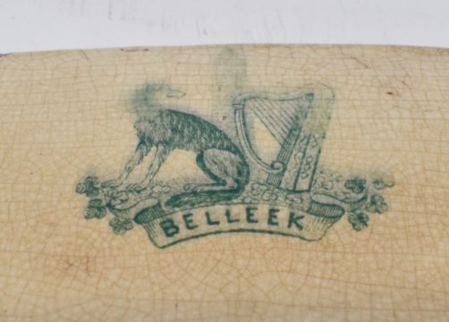 Belleek 19thC large meat plate and a Beswick Art Deco dish with scrolling handles, 49 x 39cm, D31cm