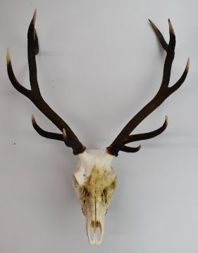 Taxidermy study deer antlers and skull, H93 x W57cm