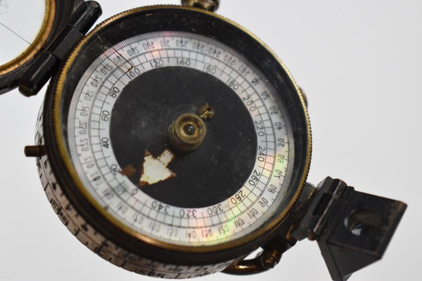 T. Cooke & Sons WW1 marching compass dated 1917, in leather case marked P.A.Forsythe 1st E Lan R (East Lancashire Regiment)