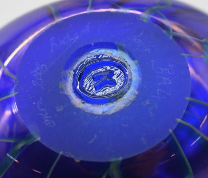 Two pieces of Okra studio glass scent bottles with stoppers, one hand signed Okra 2008 Richard P Golding BA4 the other Okra 93 SR4 No4 R P Golding, tallest 21cm