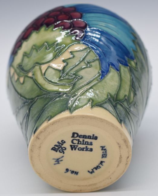 Dennis Chinaworks limited edition no 6 baluster vase decorated in the de Morgan cornflower pattern, H15cm