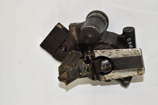 WW2 gun sight no.36280 by NPLS, Hon Reg Co 1942, with leather carry case