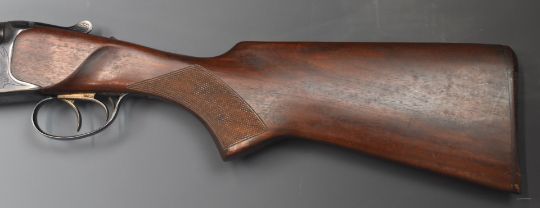 Baikal NK-27E 12 bore over and under ejector shotgun with engraved scenes of birds to the locks, engraved top lever, trigger guard and underside, double trigger, chequered semi-pistol grip and forend and 27.5 inch barrels choked ¼ and ½, overall length 112cm, length of pull 36cm, serial number H04983. PLEASE NOTE THAT A VALID RELEVANT FIREARMS/SHOTGUN CERTIFICATE IS REQUIRED TO HANDLE/PURCHASE THIS ITEM.
