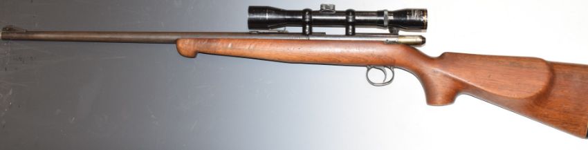 BSA .22 bolt-action rifle with semi-pistol grip, Nikko Stirling Special 4x32 scope and 22.5 inch barrel, overall length 101.5cm, serial number 24375B. PLEASE NOTE THAT A VALID RELEVANT FIREARMS/SHOTGUN CERTIFICATE IS REQUIRED TO HANDLE/PURCHASE THIS ITEM.
