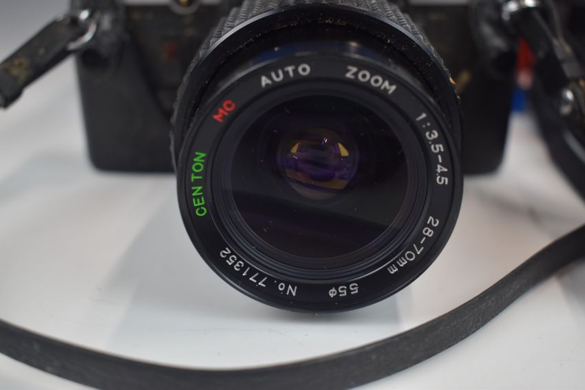 Olympus OM10 35mm SLR camera with 50mm 1:1.8 Olympus lens and 28-70mm 1:3.5-4.5 and 70-210mm 1:4.0-5.6 Centon lenses, all with original boxes