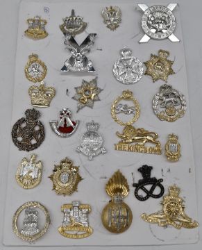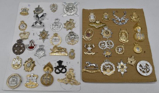 Collection of approximately forty Staybrite badges including Highland Light Infantry, Queen's Own Hussars, 9th/12th Lancers, Argyll & Sutherland Highlanders, Rifle Brigade, Royal Artillery, Royal Hampshires etc