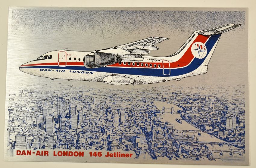 Eight aircraft etched light alloy plaques comprising Tornado, for the Italian, German and Saudi Air Forces, Phantom FGR III 56 Squadron RAF, Vulcan B Mk2 44 (Rhodesia) Squadron, Andover 115 Squadron, 146 Jet Liner and Boeing 737-300, both Dan Air, all 29 x 19cm