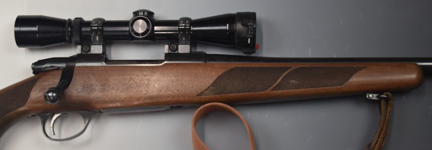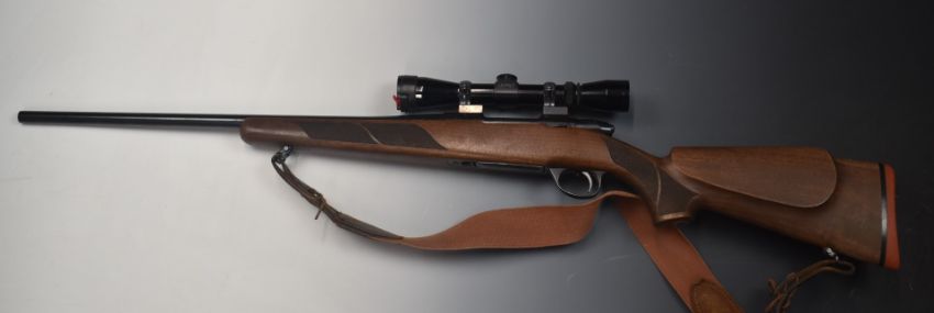 Sako III .243WIN bolt-action sporting rifle with magazine, chequered semi-pistol grip and forend, raised cheek piece, canvas and leather sling and 23 inch barrel, overall length 107.5cm, serial number 208162. PLEASE NOTE THAT A VALID RELEVANT FIREARMS/SHOTGUN CERTIFICATE IS REQUIRED TO HANDLE/PURCHASE THIS ITEM.