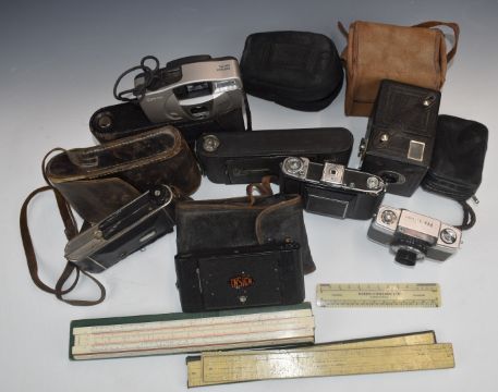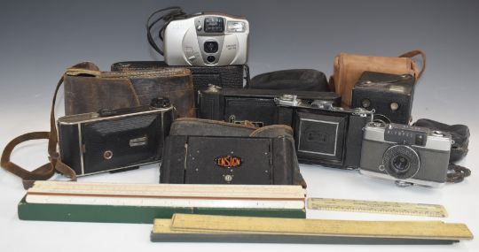 Collectable cameras to include Olympus Pen-EE and Ensign, Zeiss Ikon 521/16, Impero and Kodak folding cameras,