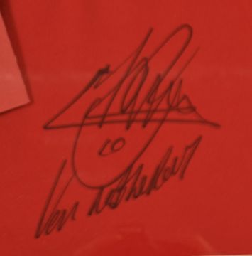 Ruud Van Nistelrooy signed Manchester United football shirt and photograph montage, framed and glazed with certificate of authenticity.
